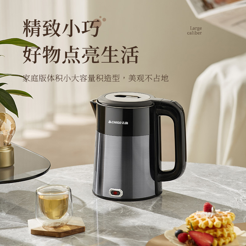 志高迷你电热水壶家用煮水烧水壶1.2升304不锈钢酒店保温大容量