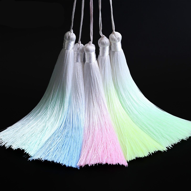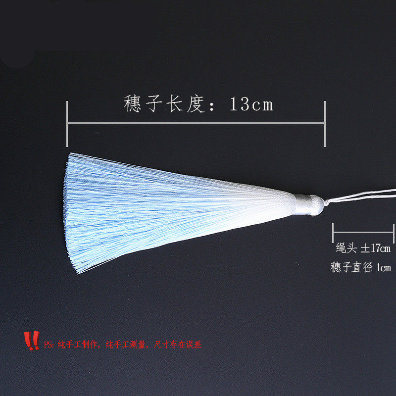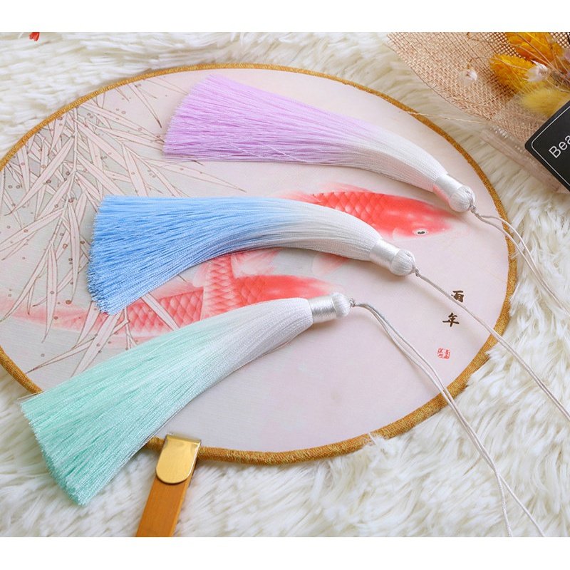渐变冰丝流苏团扇 汉服头饰挂件 垂直压襟车挂书签吊穗配件