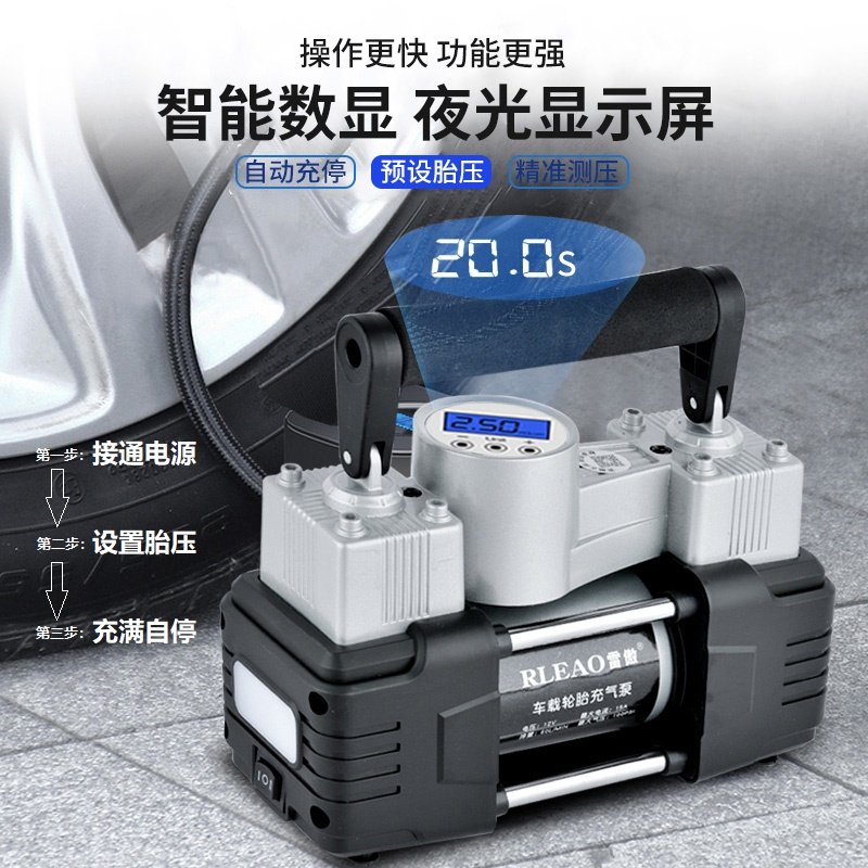 雷傲车载充气泵双缸高压便携式轿车轮胎家车用打气泵筒电动汽车