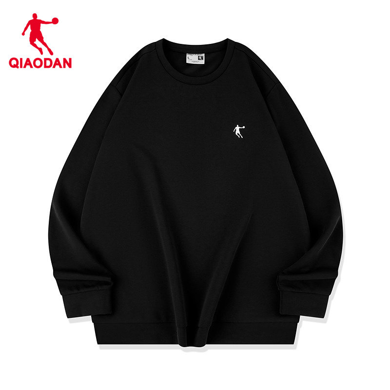 乔丹卫衣男圆领黑色宽松套头衫2026秋季长袖休闲运动服加绒针织衫