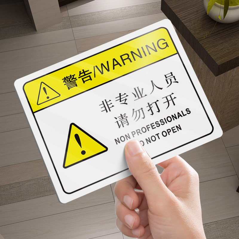 非专业人员请勿打开机械设备警示贴安全标识全工业机器标签禁止打开标示未经允许严禁打开机械PVC提示牌定制