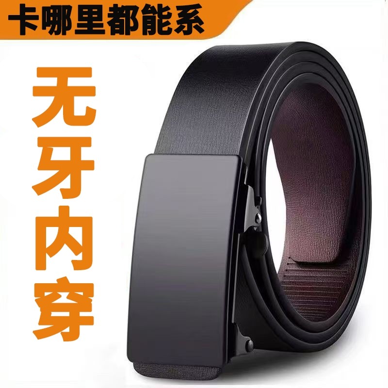 皮带男款无牙自动扣真皮裤带子商务潮流年轻人男士腰带内穿