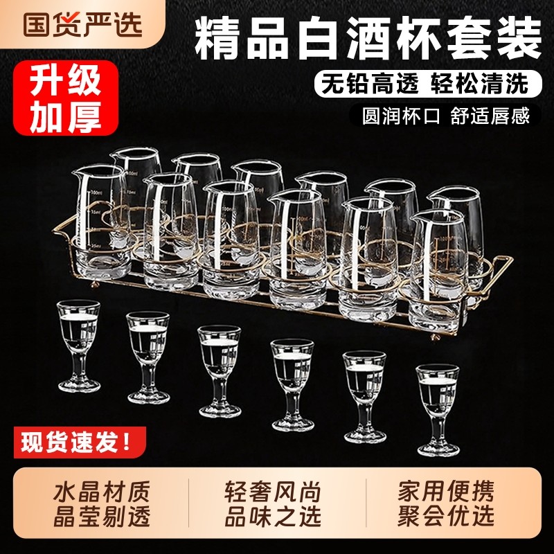 水晶玻璃白酒杯酒具套装家用12只一口杯高档分酒器小酒盅刻度便携