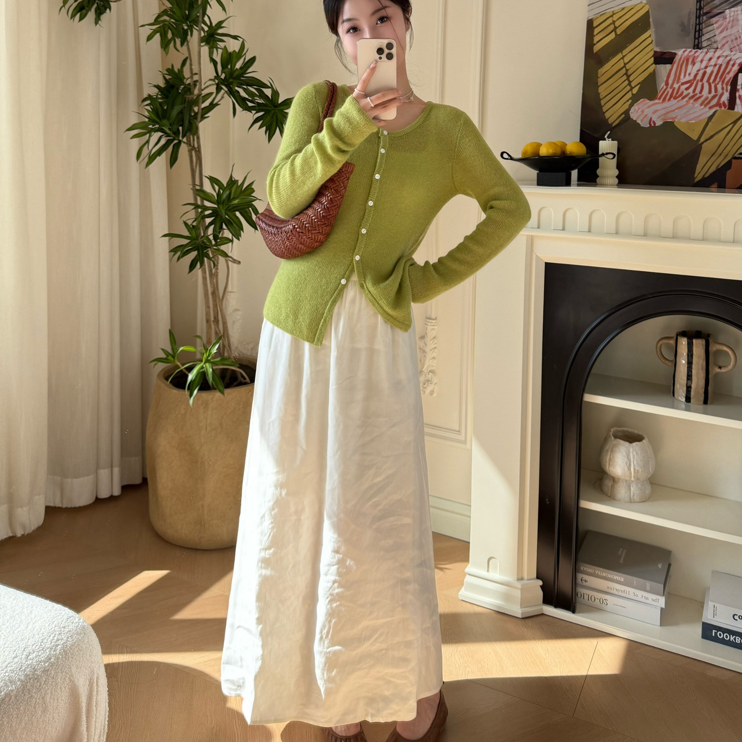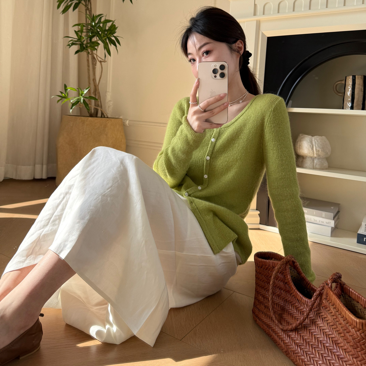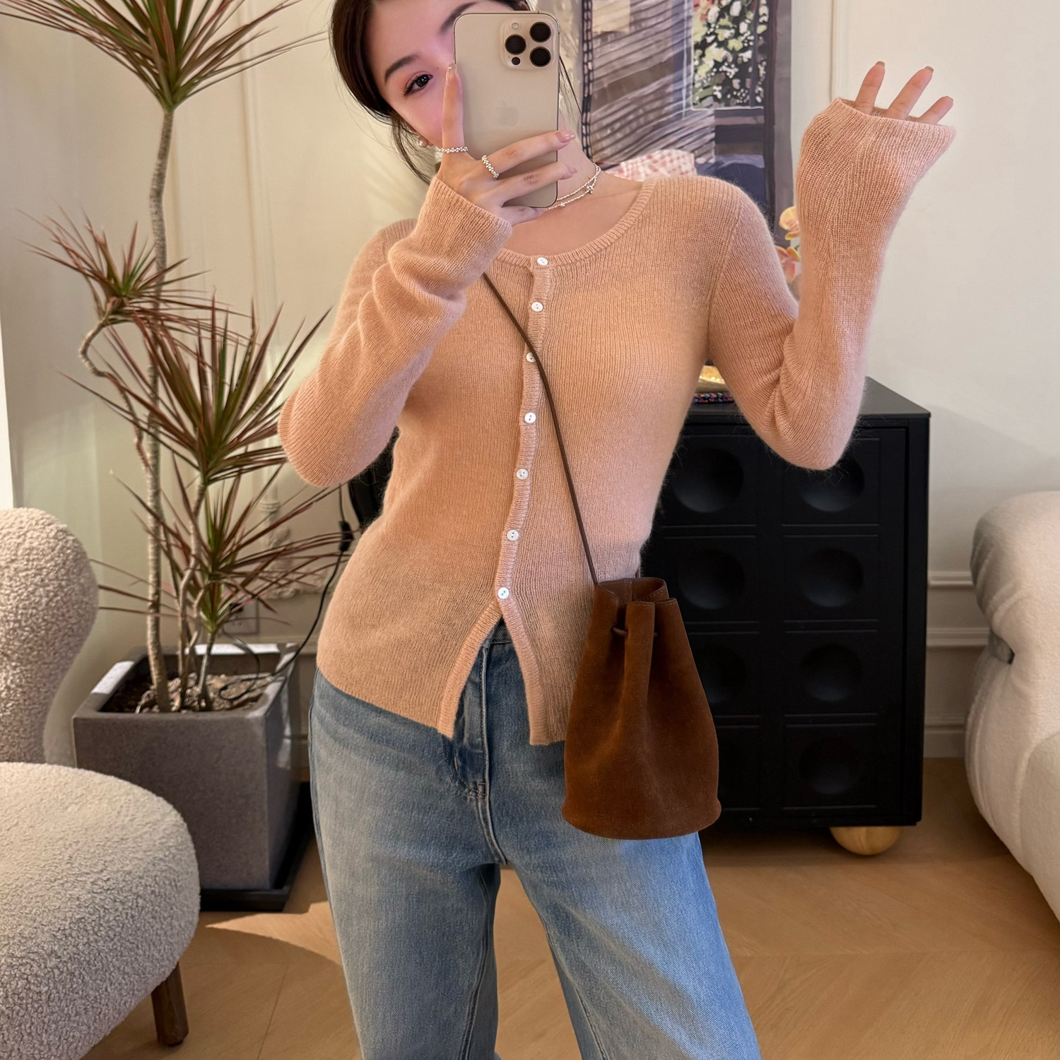 曹大曼 轻盈柔软马海毛修身温柔小开衫薄款针织开衫春