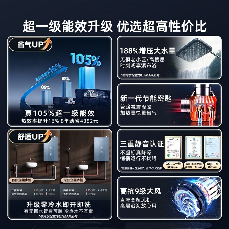 海尔燃气款热水器超一级能效增压水伺服零冷水16L升天然气E5