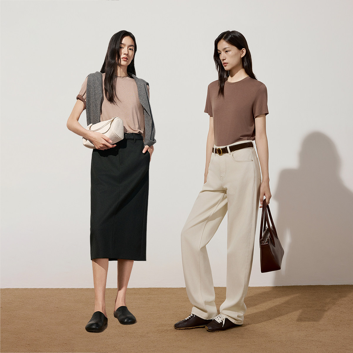 陈都灵丨凉感T森马短袖T恤女修身纯色基础夏季新款圆领白色女装