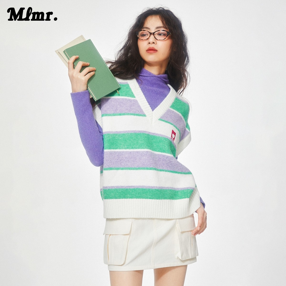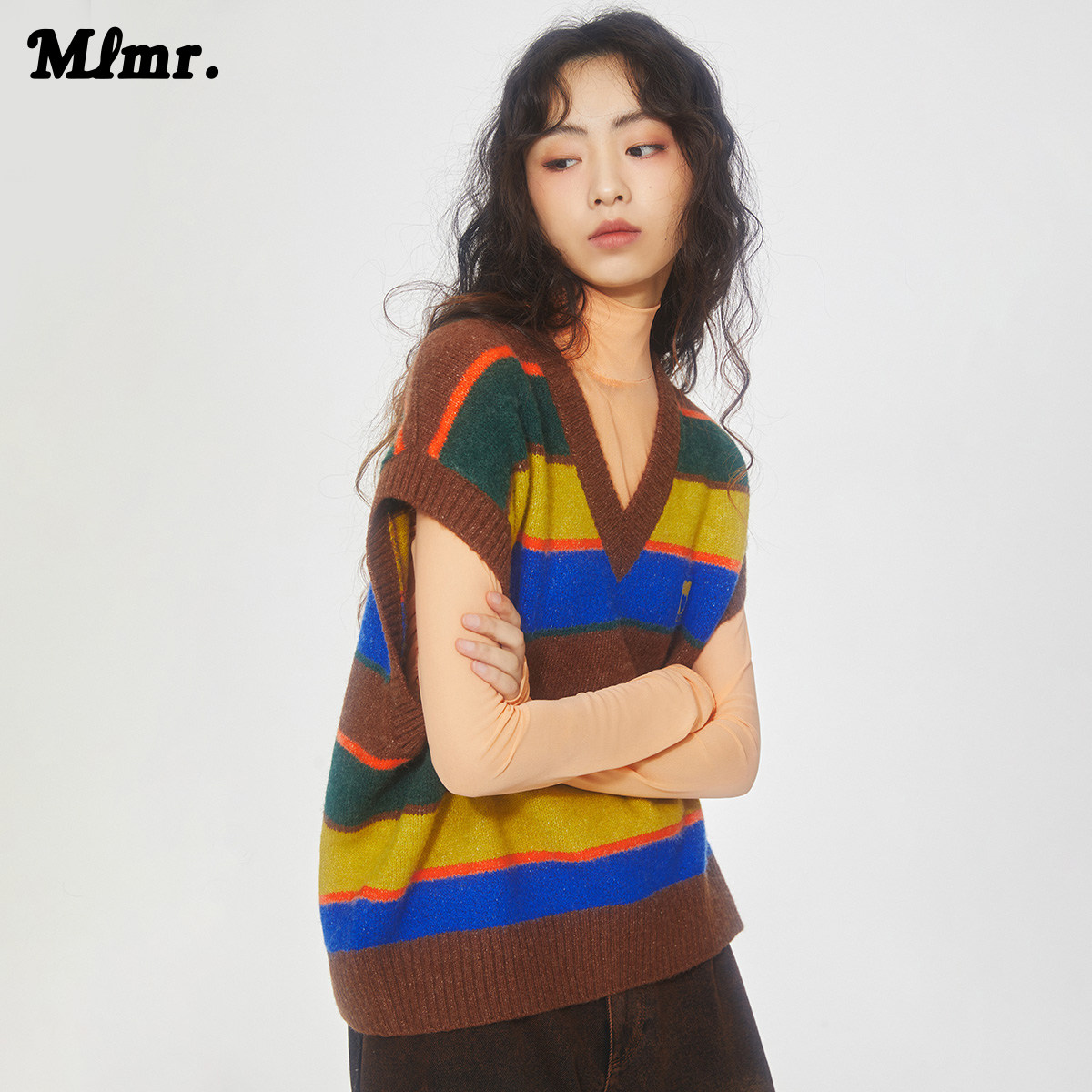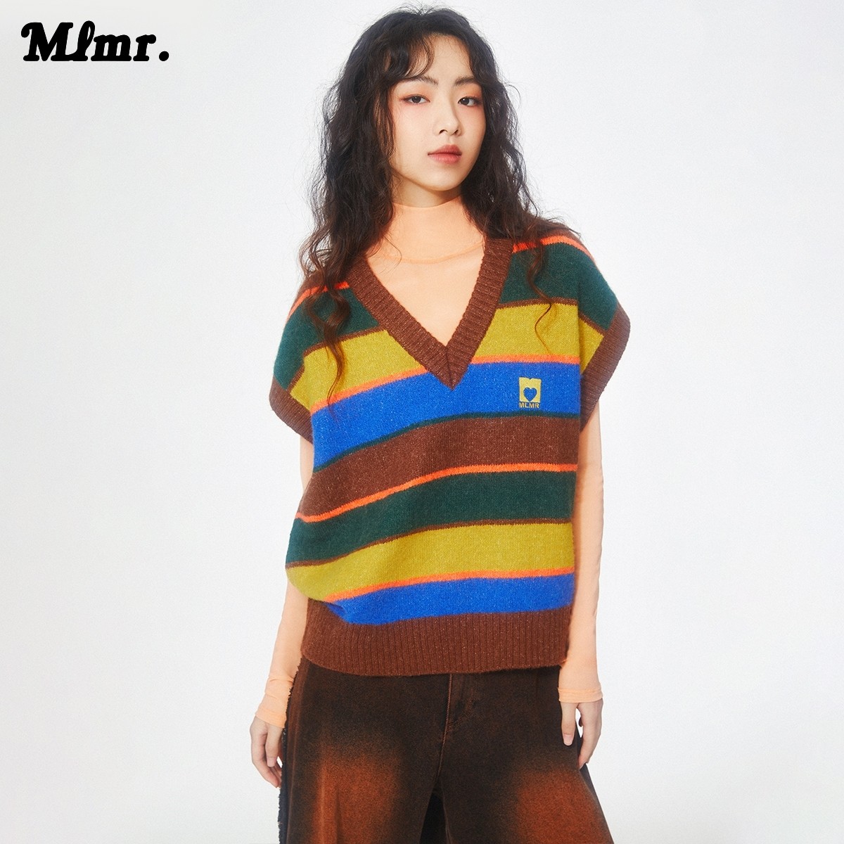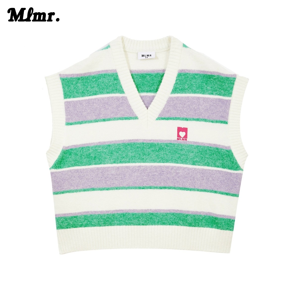MLMR秋装新多巴胺穿搭女条纹针织衫背心甜辣小上衣糖果色毛衣马甲