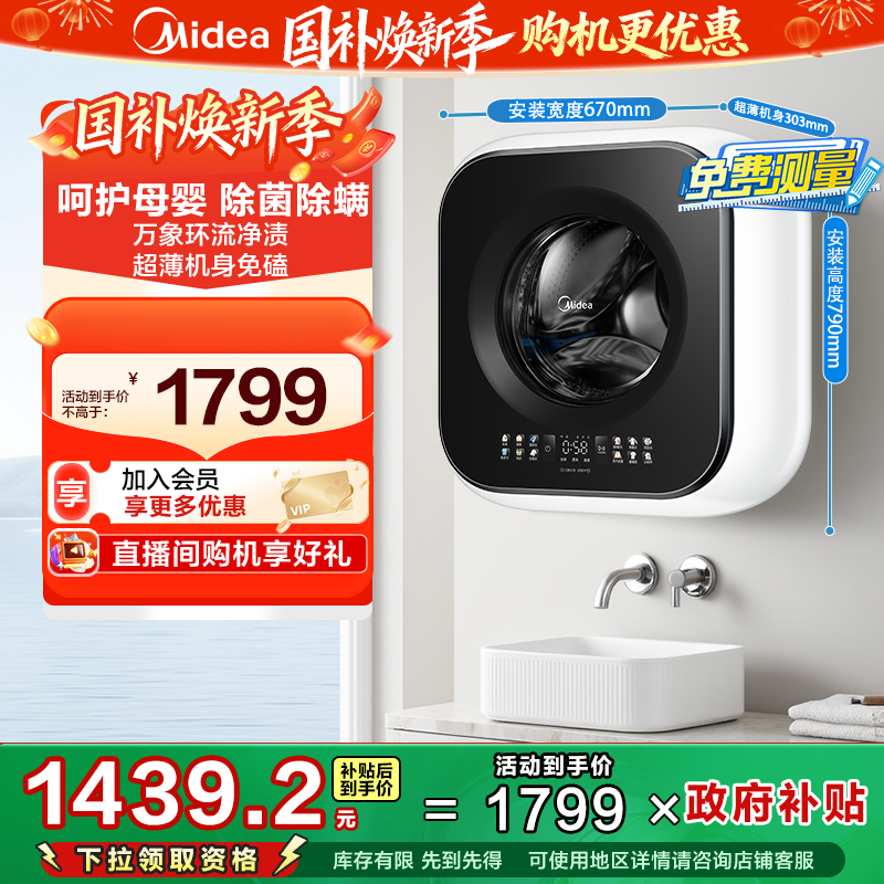 美的3kg全自动母婴宝宝儿童小型迷你婴儿内衣裤滚筒壁挂洗衣机MAX