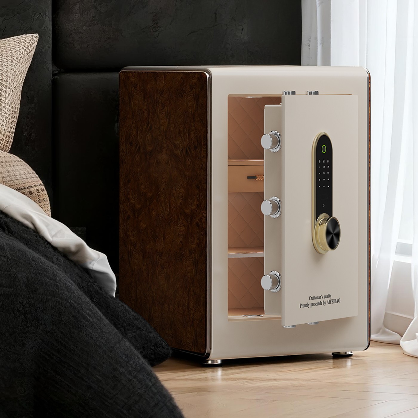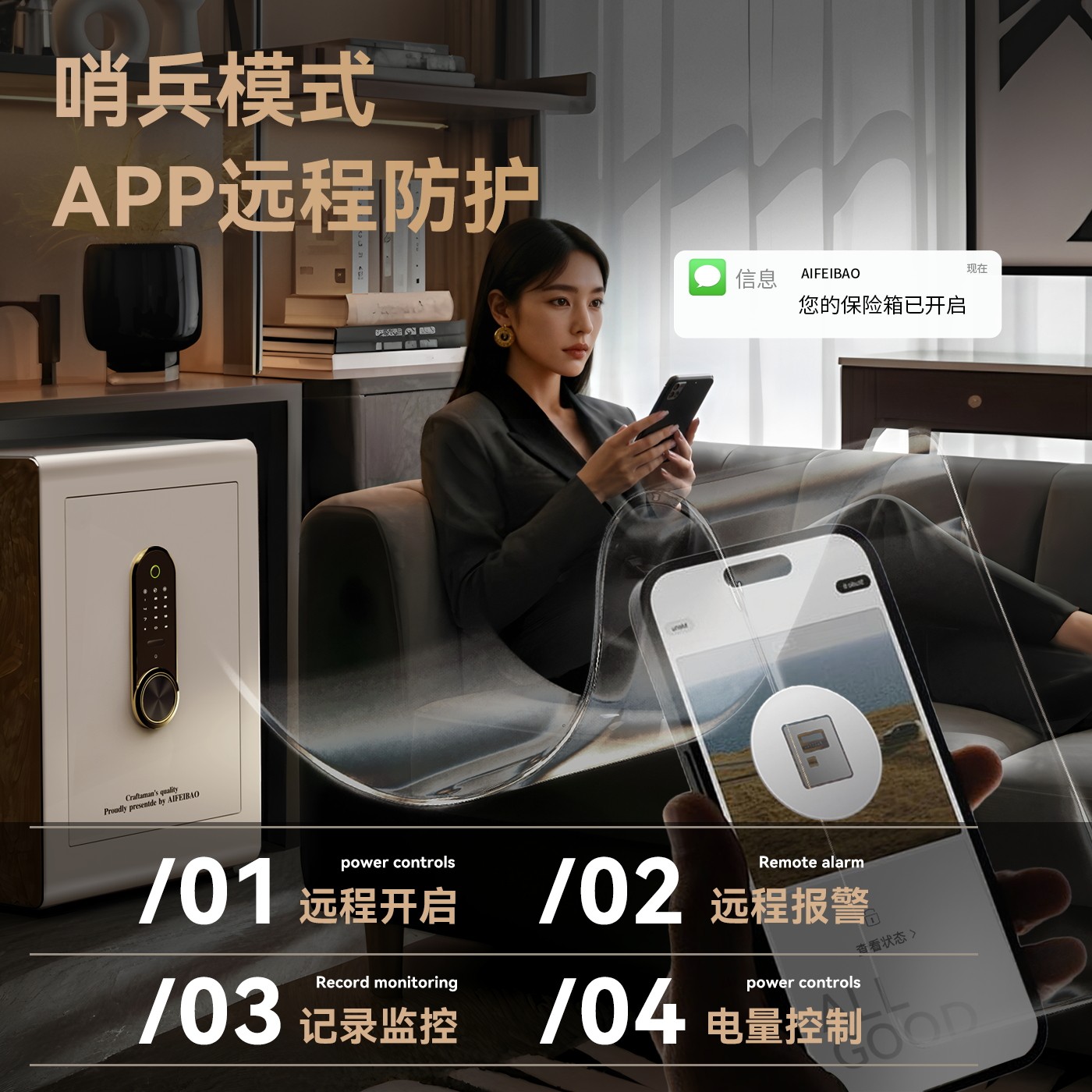 艾斐堡家用防盗保险柜国标认证指纹密码智能WIFI无线APP人脸识别保险箱3C全钢60cm家庭办公大型入墙夹万入柜