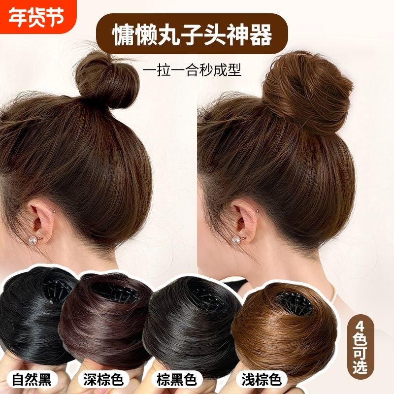 低扎丸子头假发鸡毛头抓夹盘发发包慵懒感造型头饰自然蓬松后脑勺