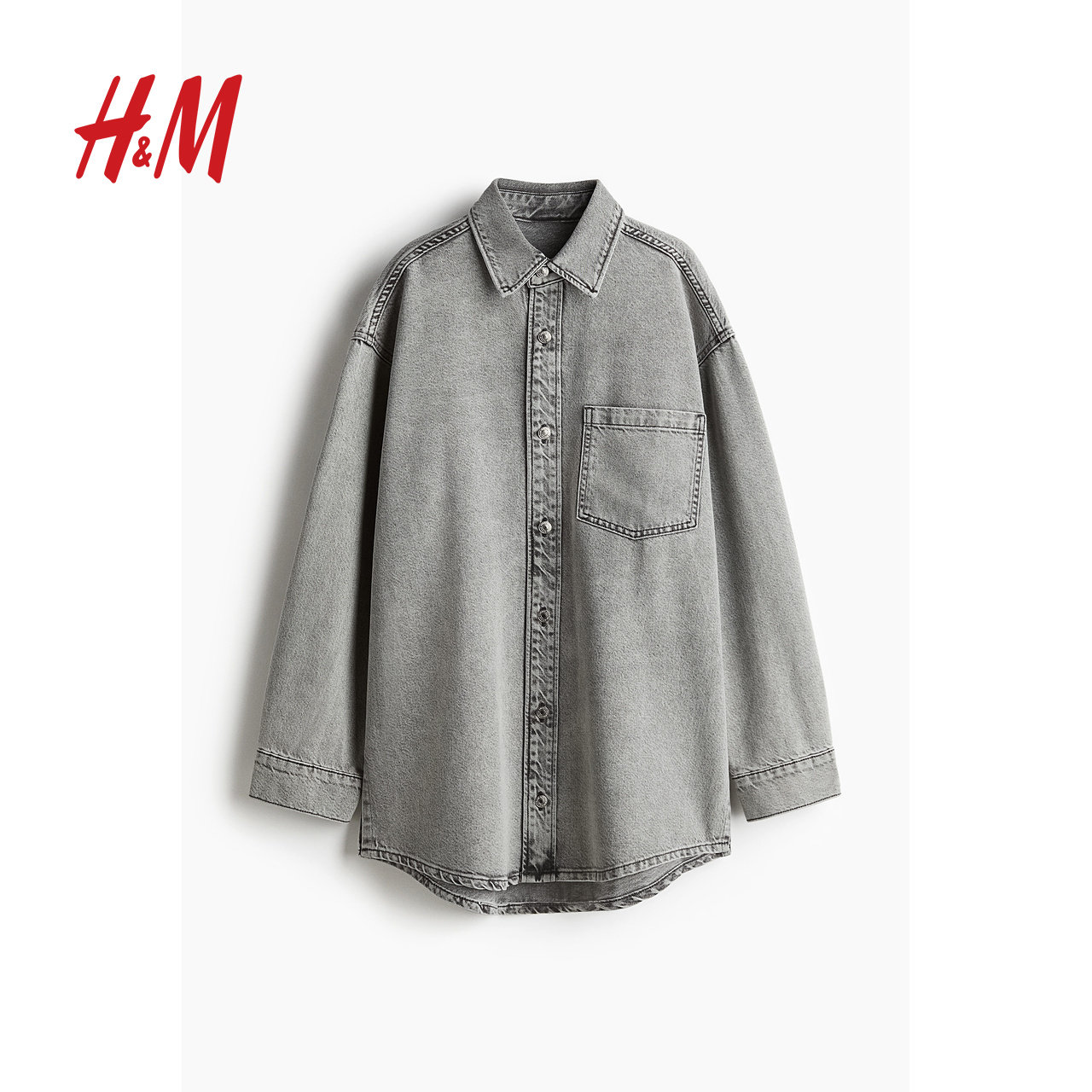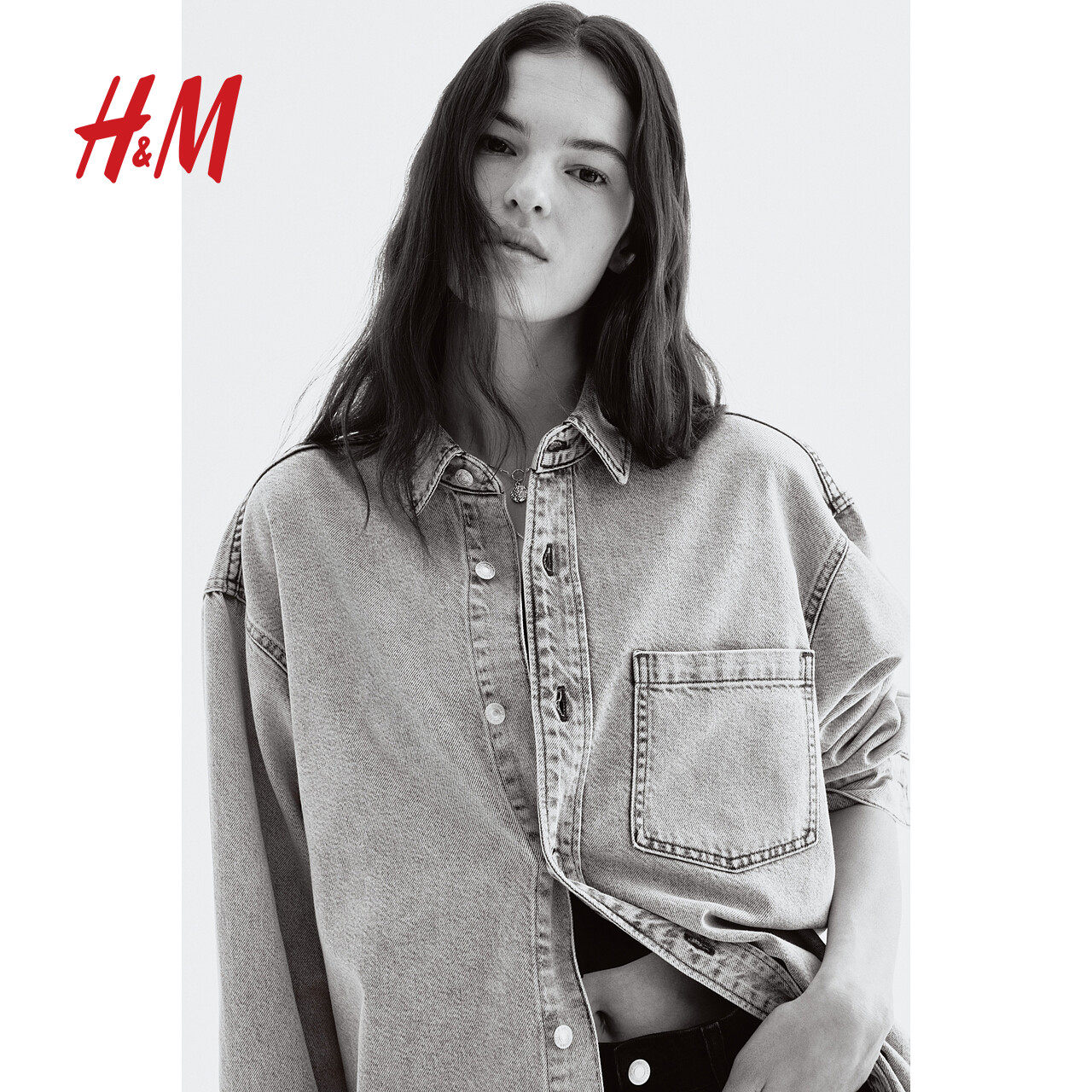 HM女装衬衫2025年冬季新款Feather Soft大廓形牛仔衬衫1260480