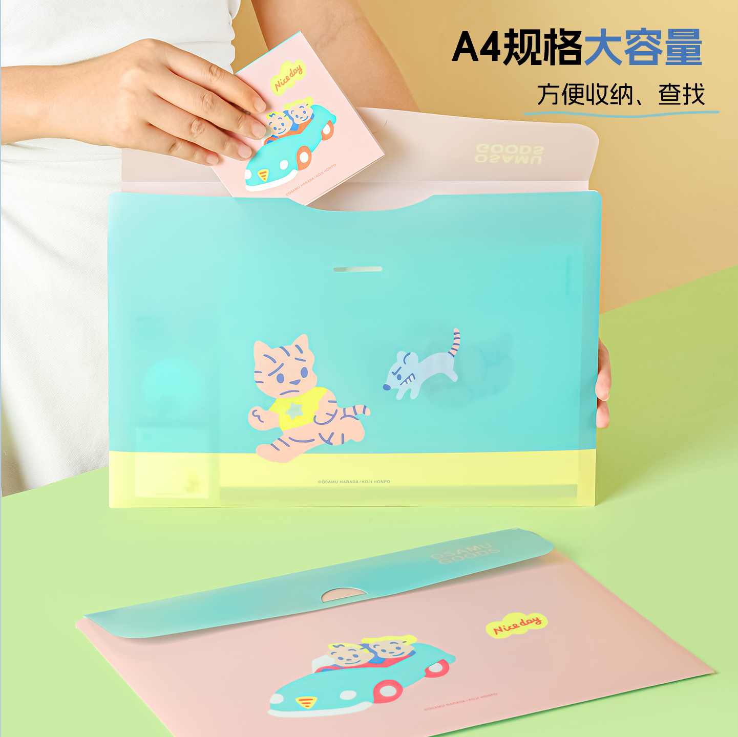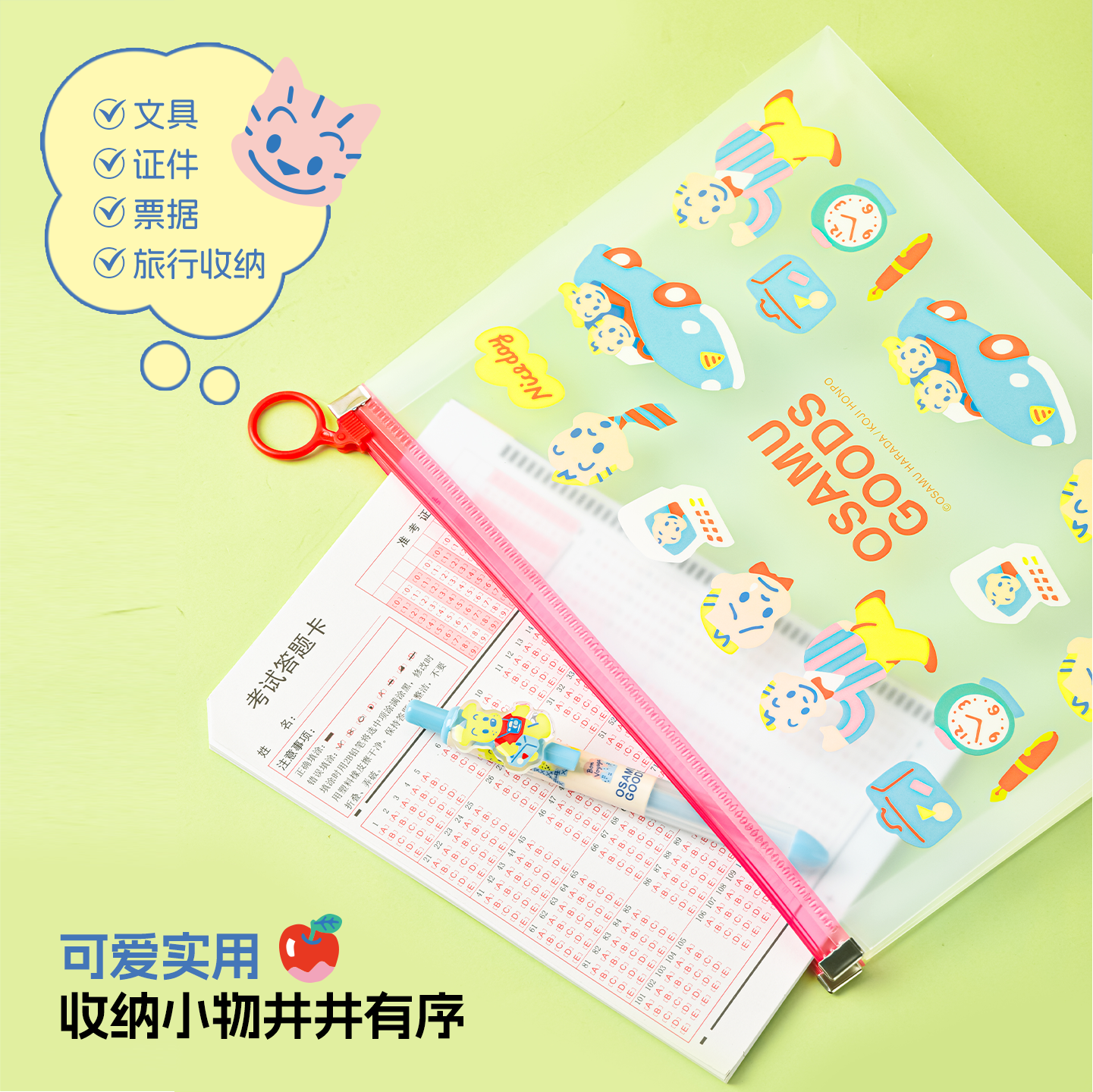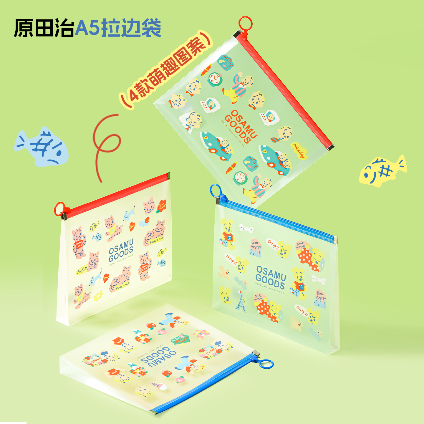 晨光原田治OSAMU GOODS拉边袋资料袋卡通可爱便携可拉链透明文件袋学生资料收纳袋大容量A4试卷文件袋pp防水