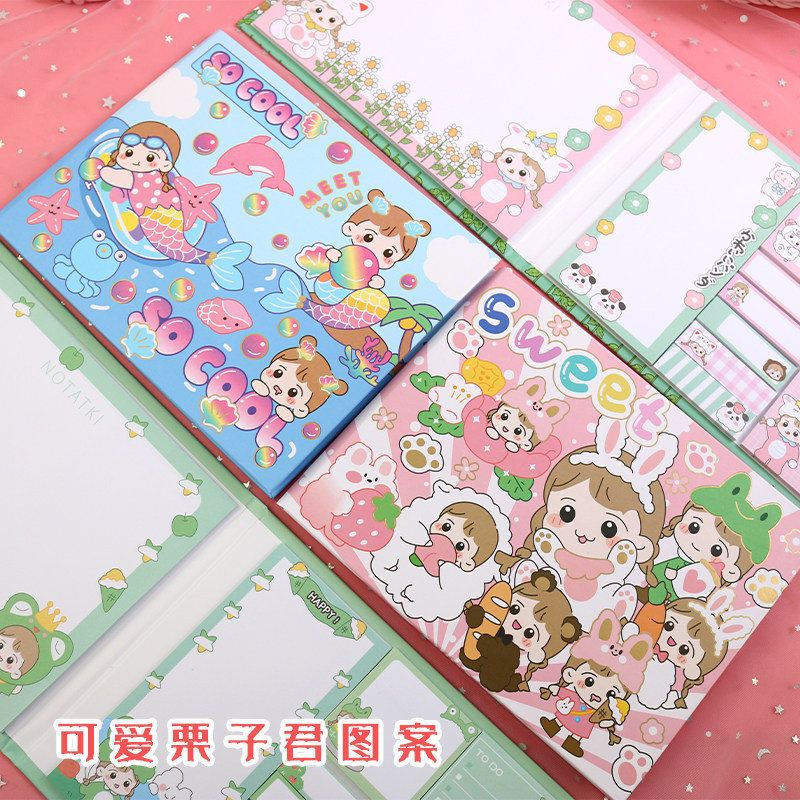 栗子君盒装便利贴可爱卡通学生N次贴便条纸便签本留言备忘小本子