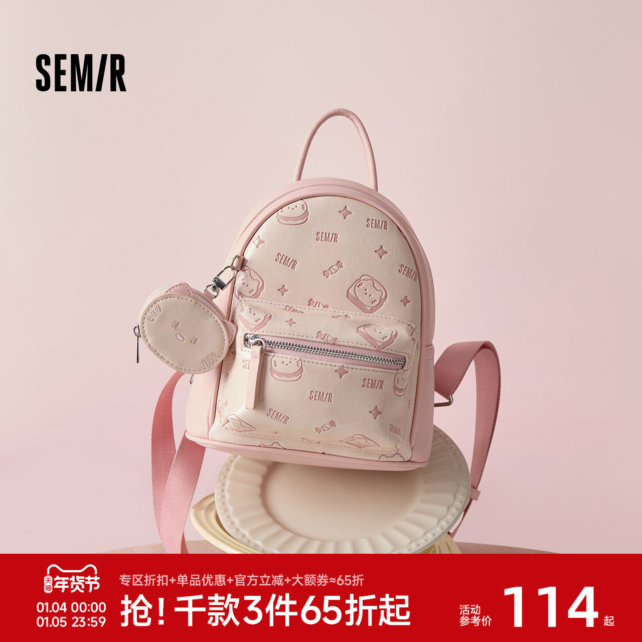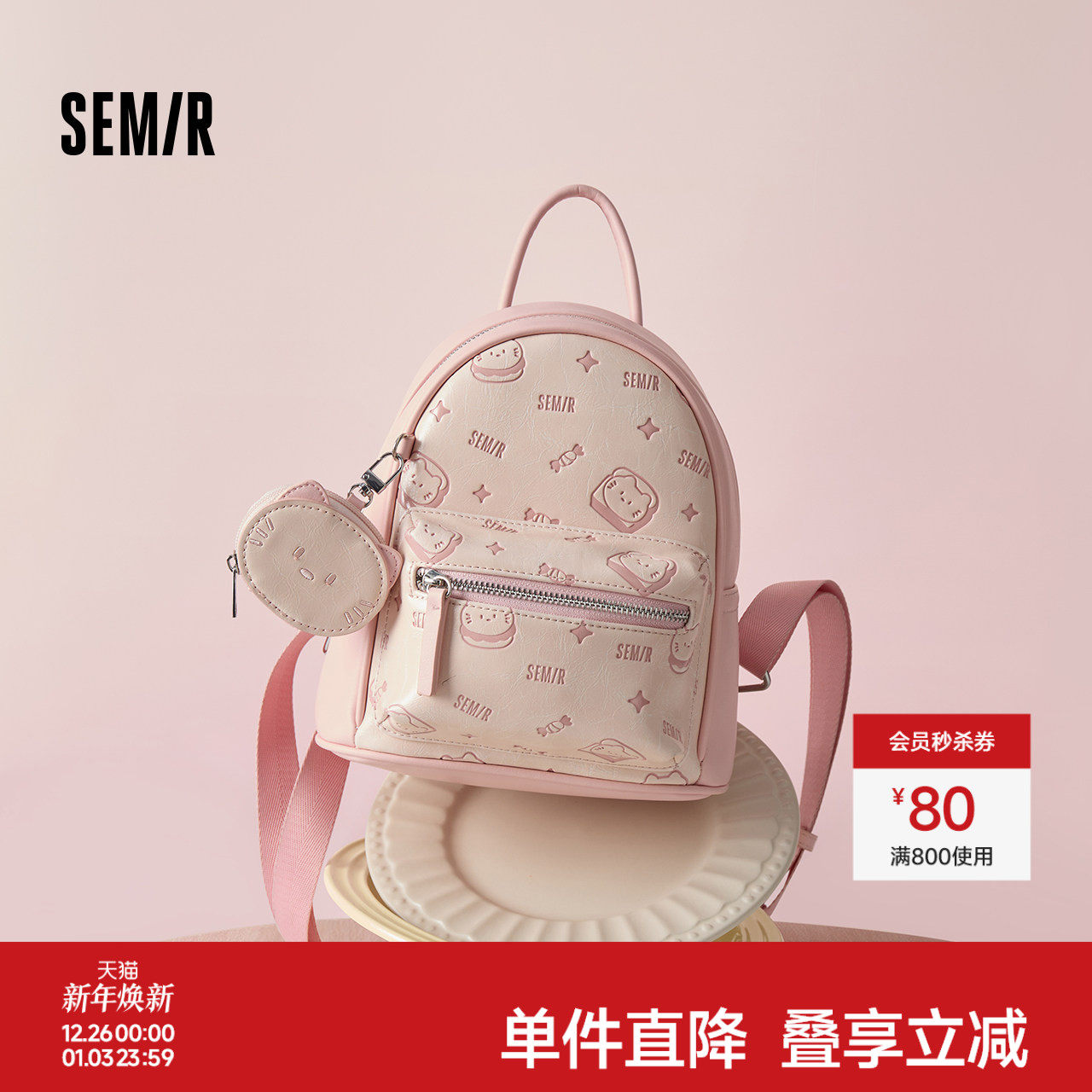 森马包包女双肩包小众设计感满印旅行背包学生小书包2025新款时尚