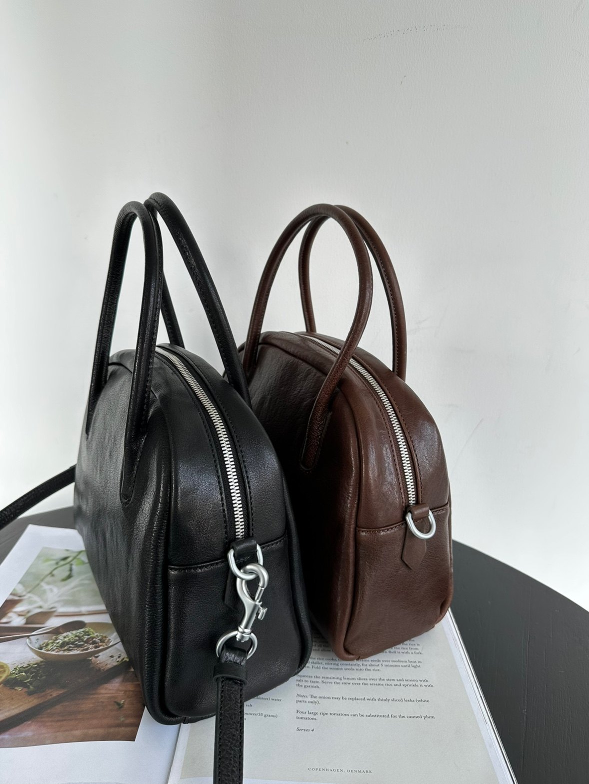 ZOEYLEE 设计师款植鞣牛皮保龄球包 手拎复古简约贝壳手提包 特