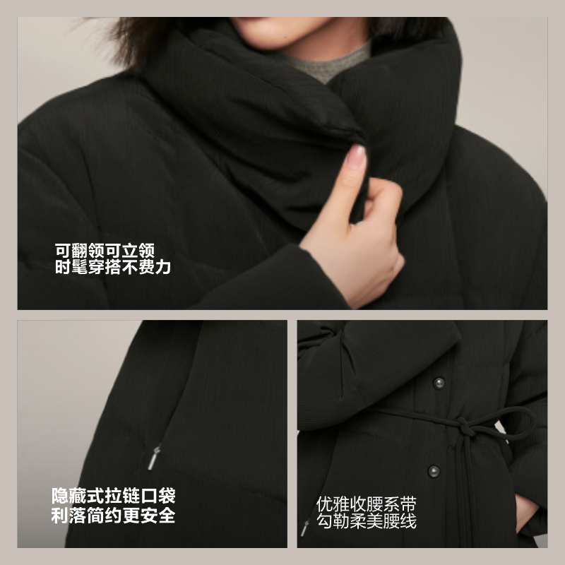 【90鹅绒】波司登冬季新款翻领羽绒服女收腰显瘦显气质商务风腰带