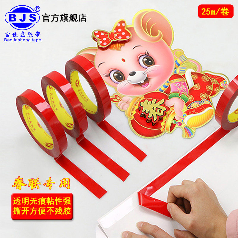 2024年龙年春联双面胶带无痕强粘透明两面胶纸胶带固定墙面防水高粘春联胶纸年画婚房车饰婚车高粘度不留痕