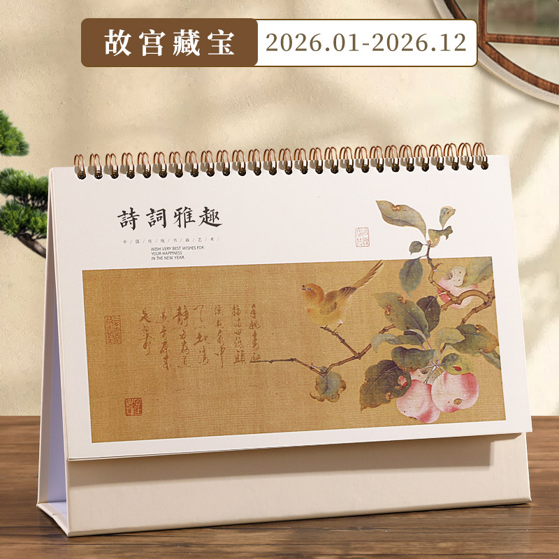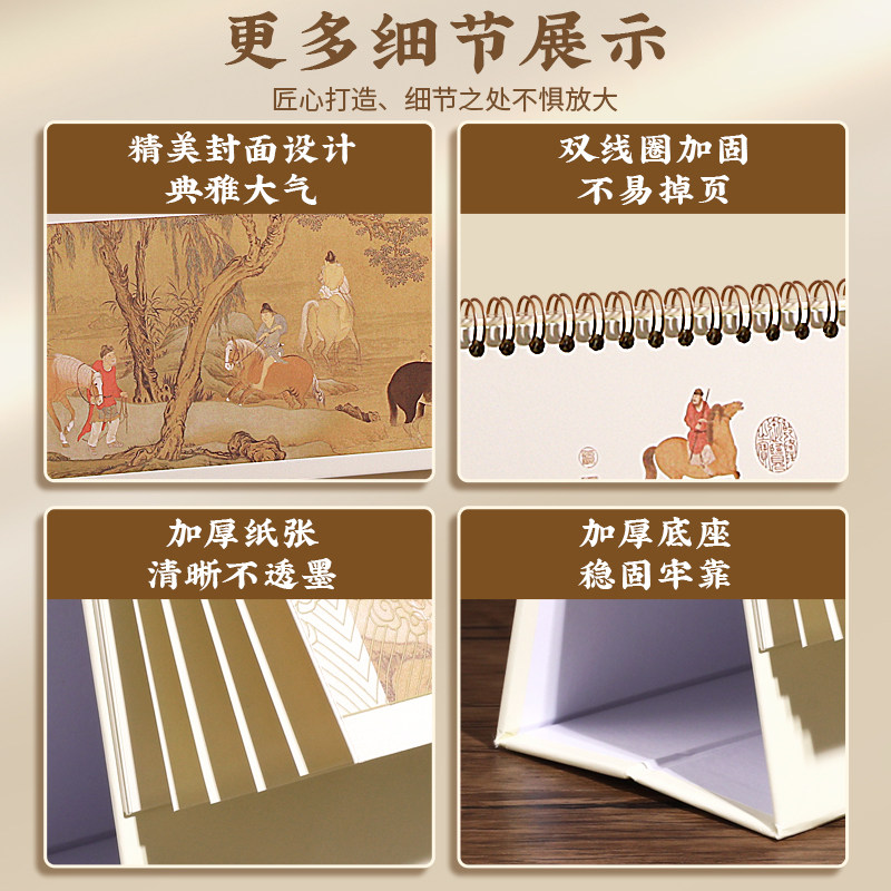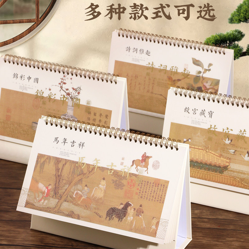 2026年新款十四张古风金雕布艺台历商务办公桌面打卡备忘录马年翻页月历公司广告企业定制可印logo简约日历本