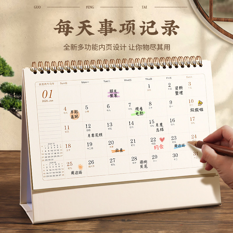 台历2026年新款日历定制logo创意简约小清新韩式办公年历个性中国风桌面摆件商务工作记事计划本订制广告月历