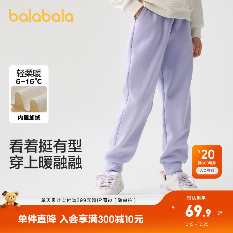 巴拉巴拉童装儿童慢跑裤冬装男童女中大童运动长裤加绒保暖裤子潮