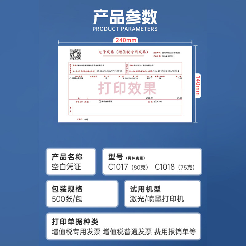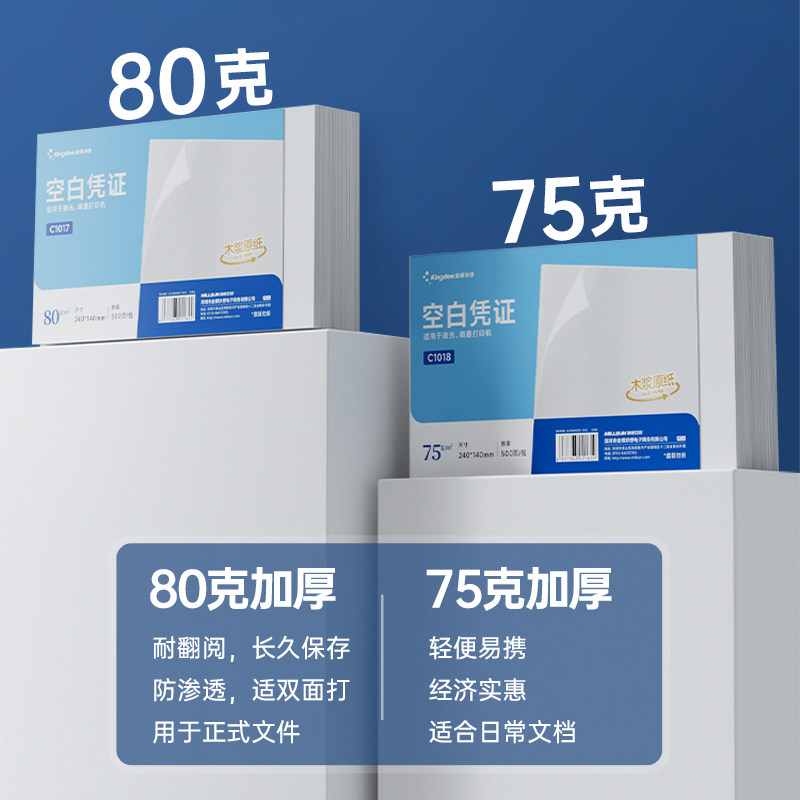金蝶妙想空白凭证纸240×140加厚财务会计专用记账凭证纸24*14空白打印纸 通用会计办公用品专用纸