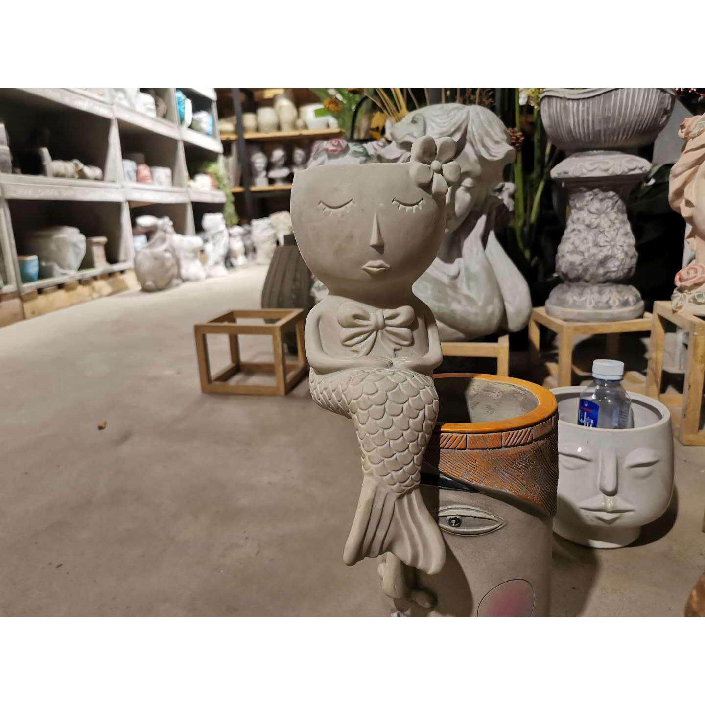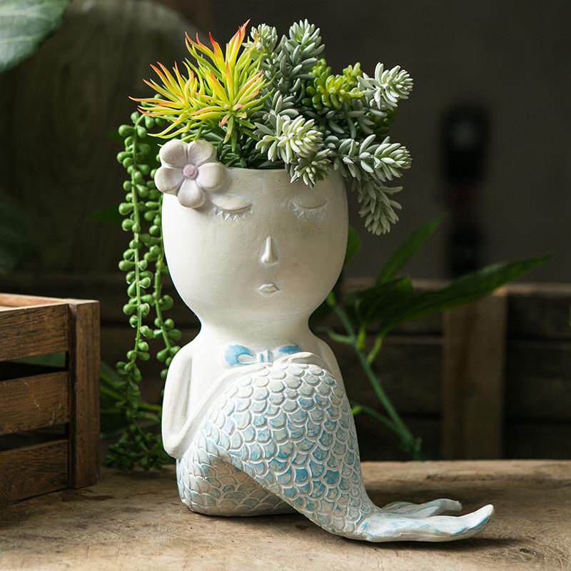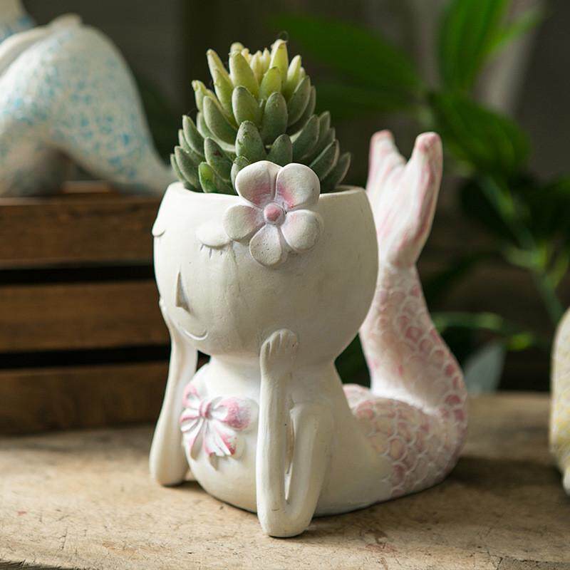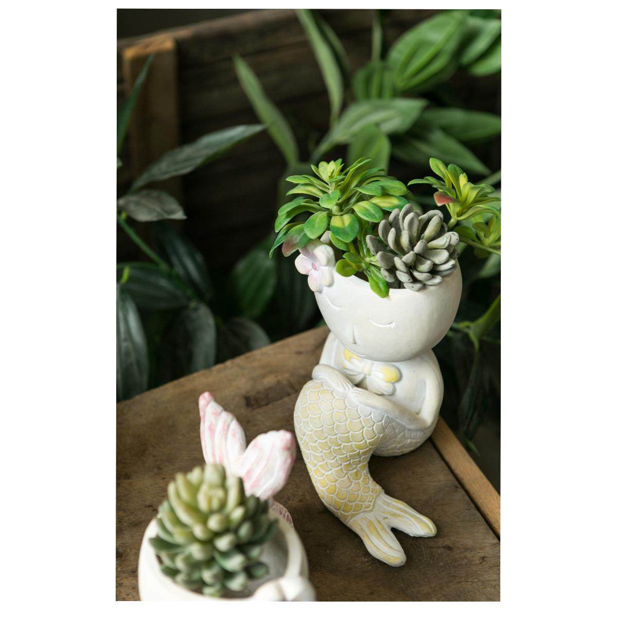 可爱美人鱼花盆卡通摆件鱼类泪多肉植物花器情人造型绿萝花盆