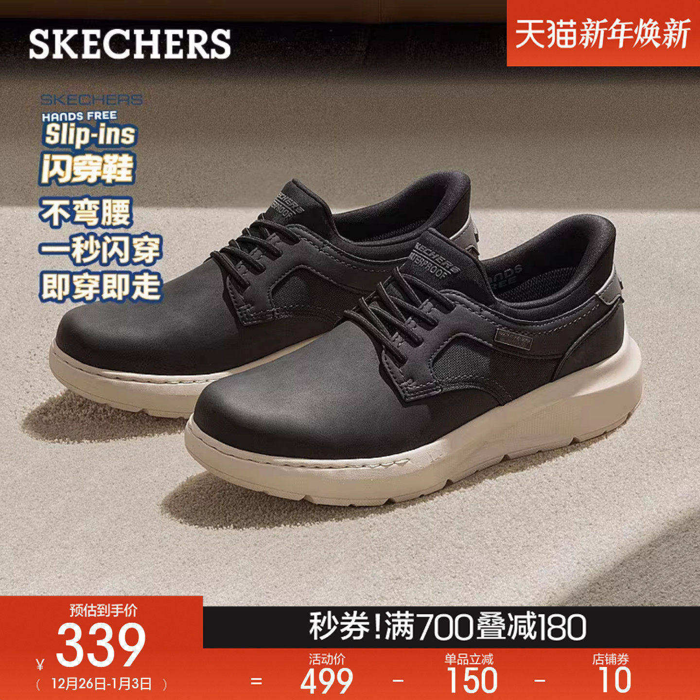 斯凯奇闪穿鞋|2025秋冬新款男舒适通勤商务鞋休闲皮鞋百搭德比鞋