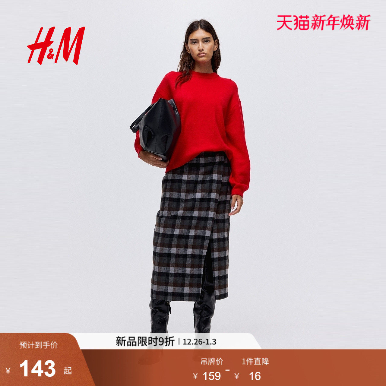 HM女装毛针织衫冬季红色毛衣打底衫慵懒法式毛衣0983240
