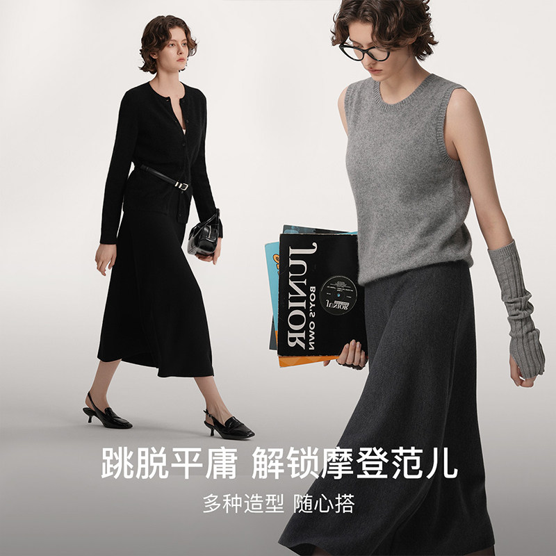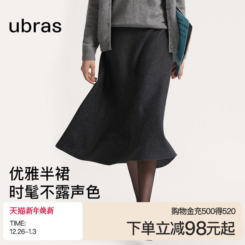 ubras精纺含羊毛针织半身裙子秋冬女裤子外穿