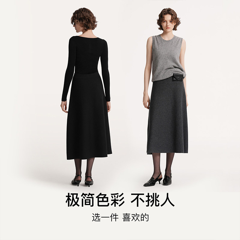 秋冬羊绒半身裙女秋冬新款中长高腰显瘦百褶大摆裙A字针织羊毛裙