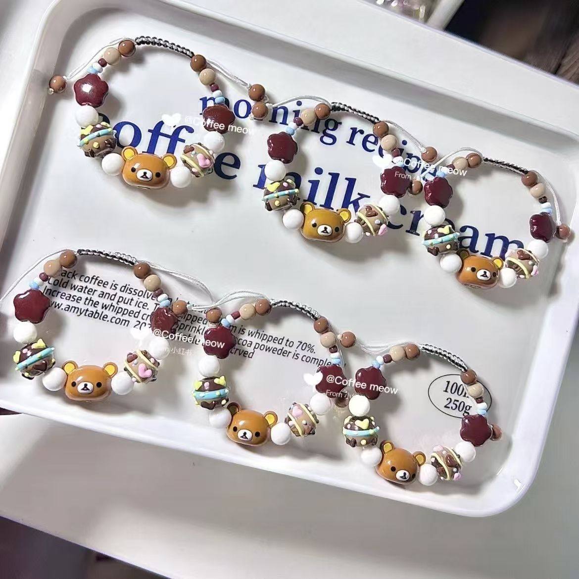 轻松熊小白熊熊弟大头古早味原创手作串珠手链腮红款可爱编织手绳