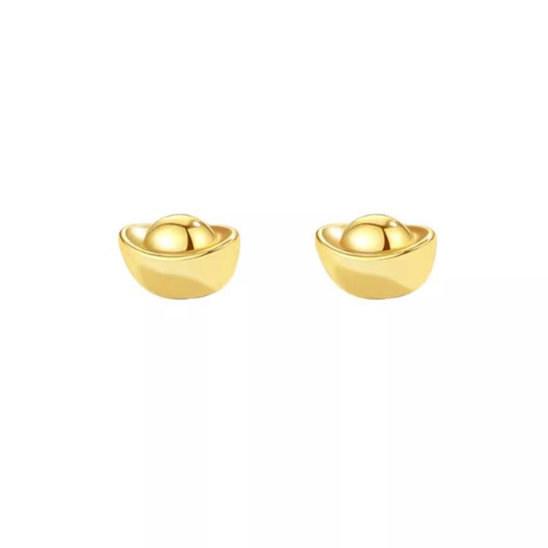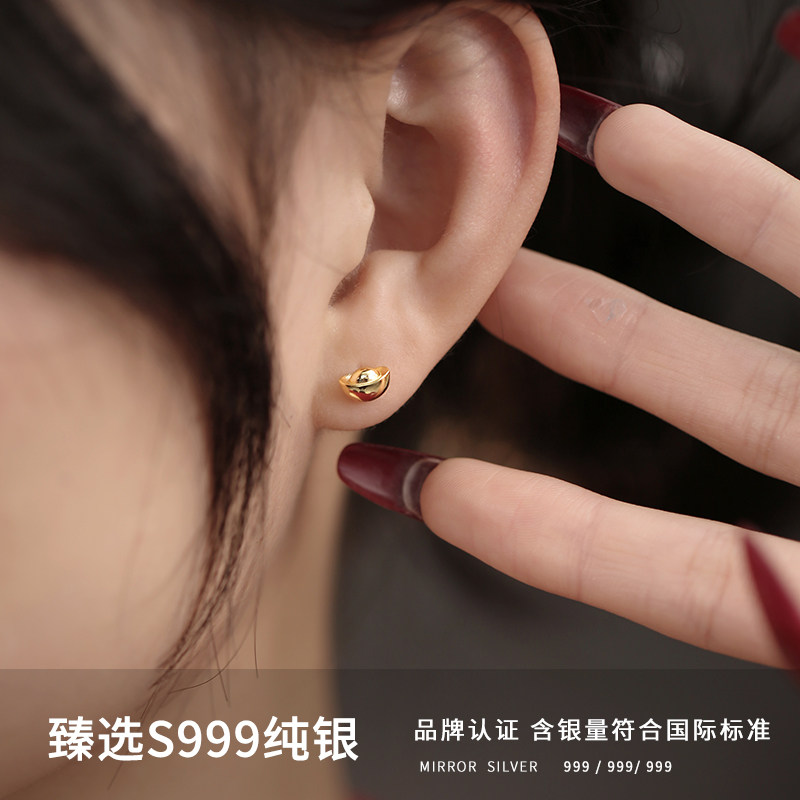 小麋人999纯银元宝简约耳钉女耳环耳饰国潮轻奢高级感足银金色