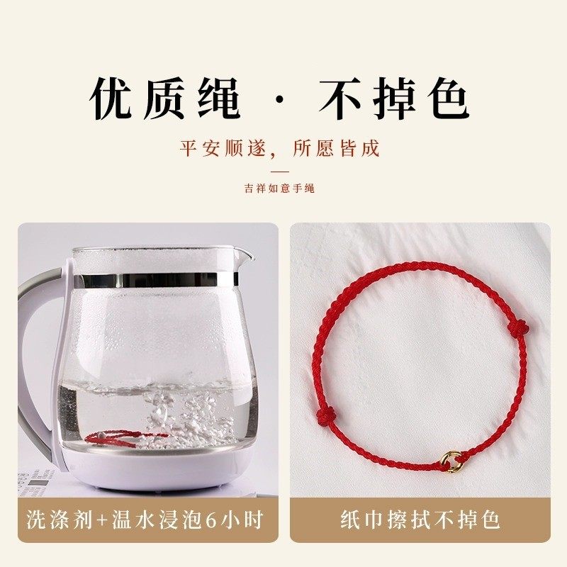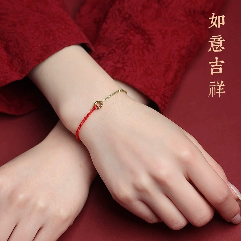 古法金平安扣细红绳手链女本命年编织手绳脚链女情侣礼物转运珠