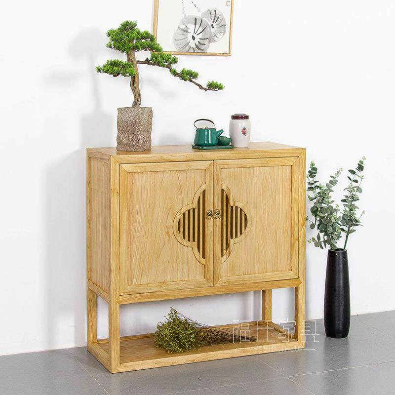 中式实木餐边柜厨房碗柜现代简约老榆木餐厅酒柜茶水柜客厅收纳柜