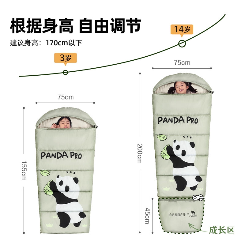 骆驼熊猫户外儿童秋冬睡袋中大童防踢被便携式学生午休露营隔脏袋