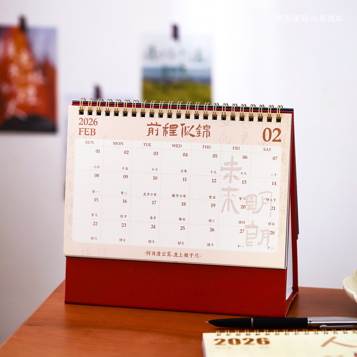 2026年台历礼盒装创意简约办公月历定制笔筒木质桌面摆件马年打卡日历计划本记事历新年礼品物流保险银行台历