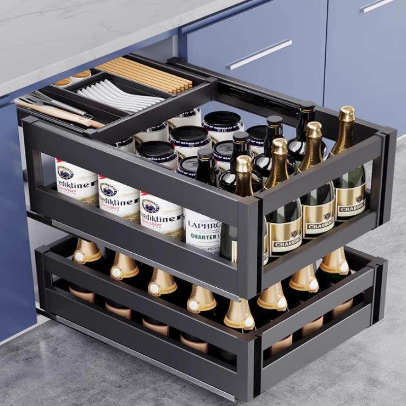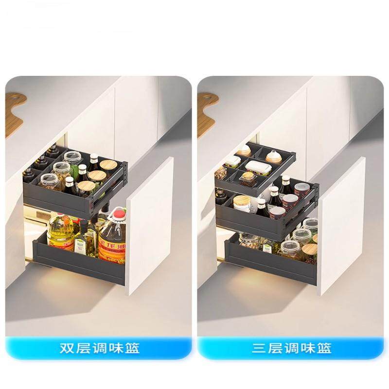 分层抽屉式调料拉篮厨房橱柜调味篮抽屉厨房放碗具拉篮调料抽拉篮
