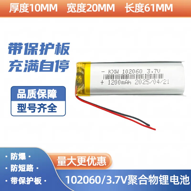 3.7V聚合物电池102060 1200mAh MP3行车记录仪蓝牙音箱导航仪
