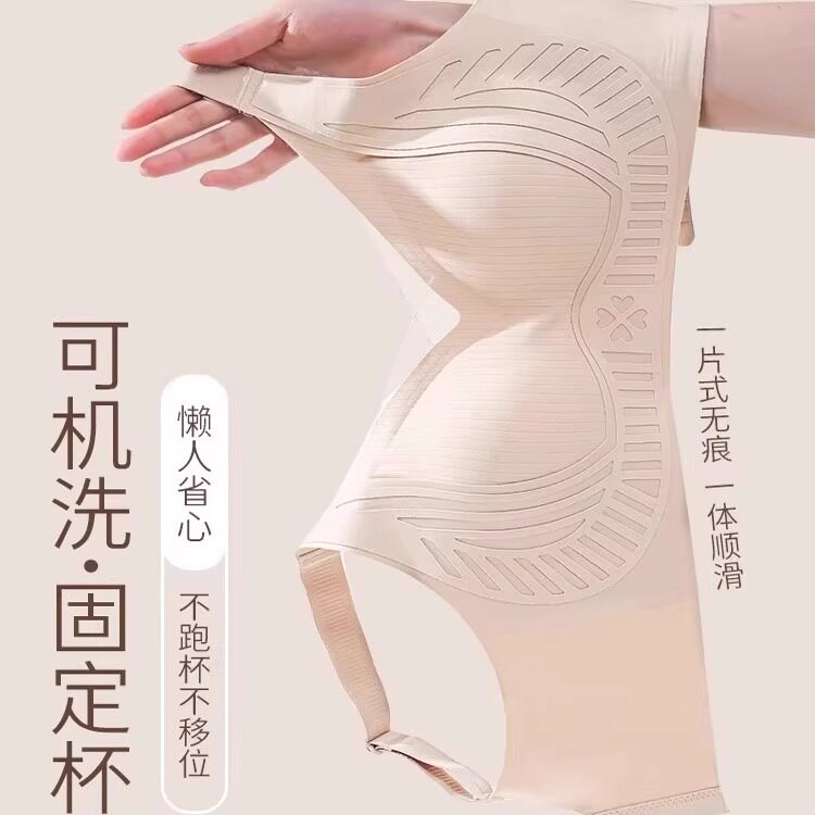无痕内衣女小胸聚拢夏季薄款运动一体美背心式固定杯无钢圈文胸罩