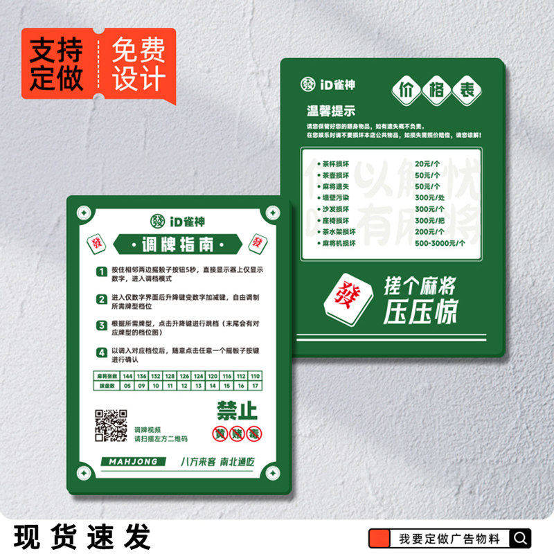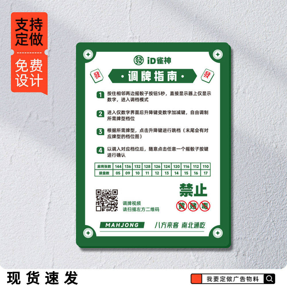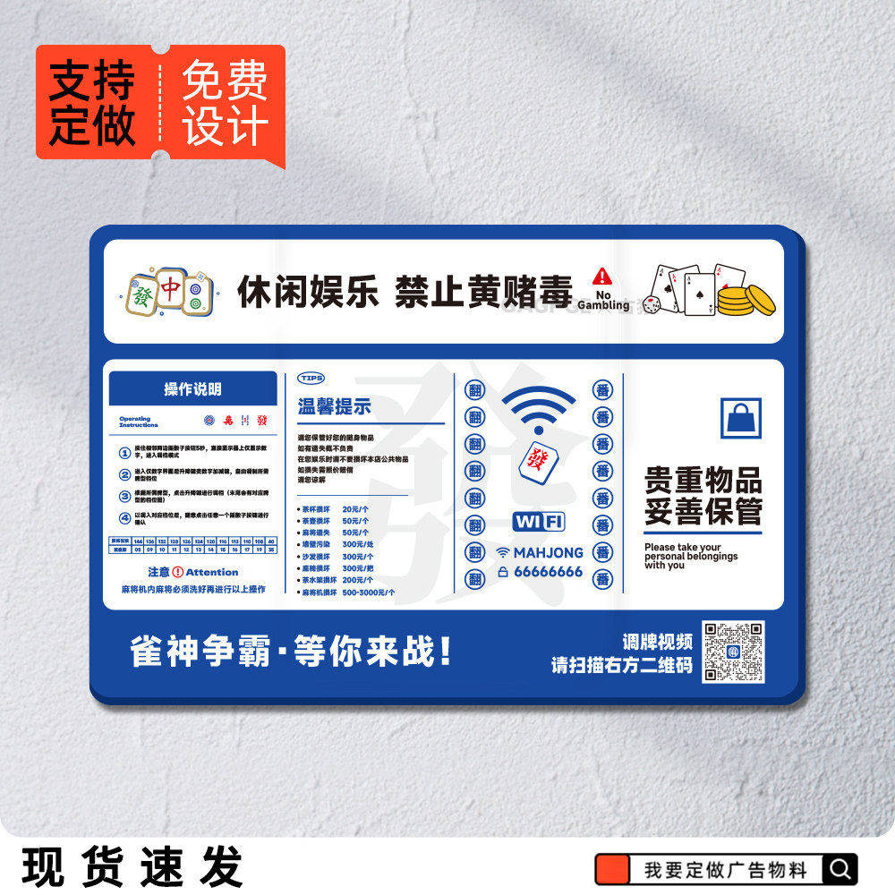 棋牌室警示标语麻将馆提示牌装饰挂画自助棋牌室必胜口诀注意事项规则高档挂图墙面壁画禁止赌博提示牌定制