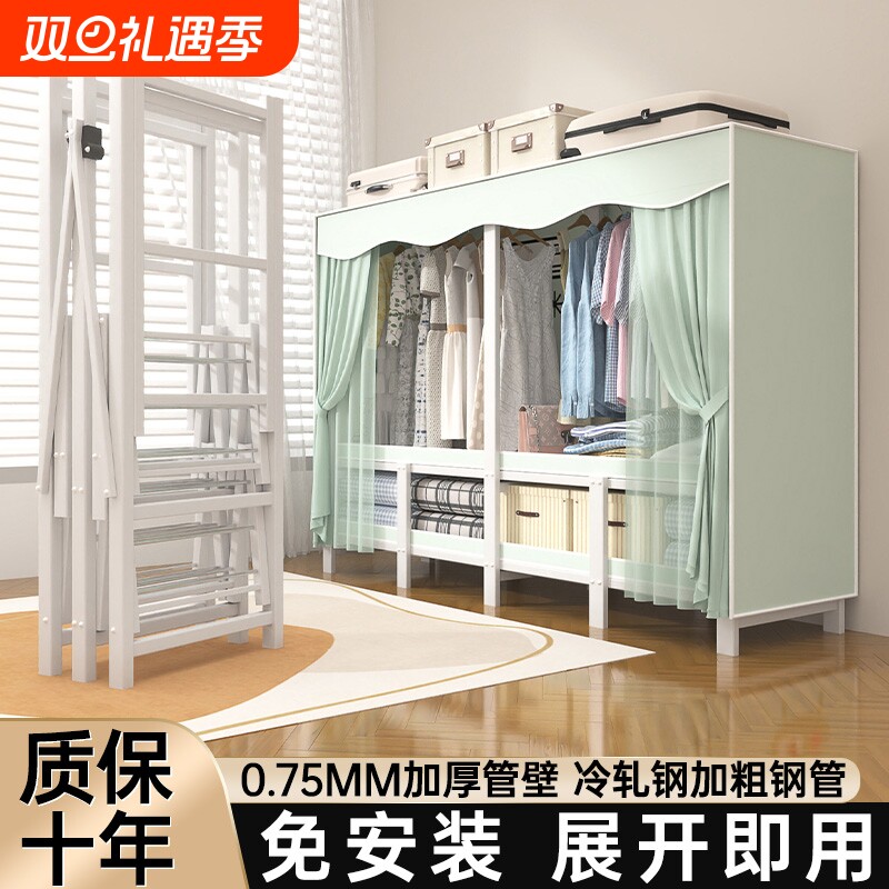 衣柜卧室家用简易布衣柜一体免安装折叠柜子出租房用衣橱结实耐用