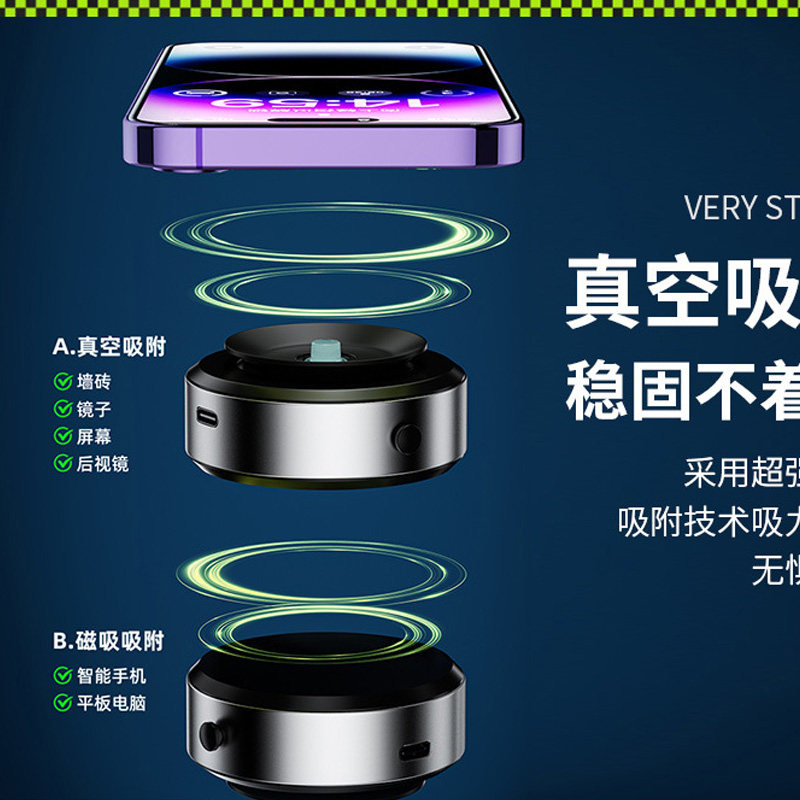 真空吸附磁吸车载手机支架2025新款吸盘车内导航手机架magsafe无线磁吸伸缩折叠便携架子墙壁通用神器