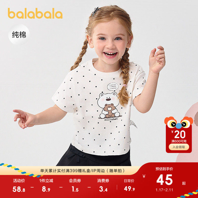 巴拉巴拉童装宝宝短袖女童t恤儿童上衣纯棉2025新款夏装可爱小熊