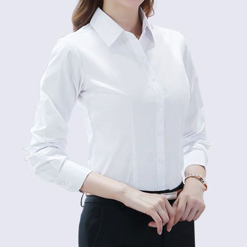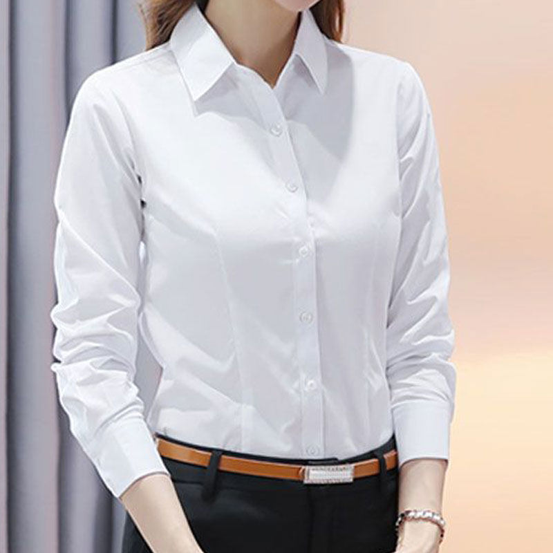 蓝色衬衫女长袖抗皱春夏韩版职业正装设计感上衣大码通勤工装衬衣