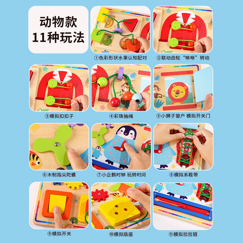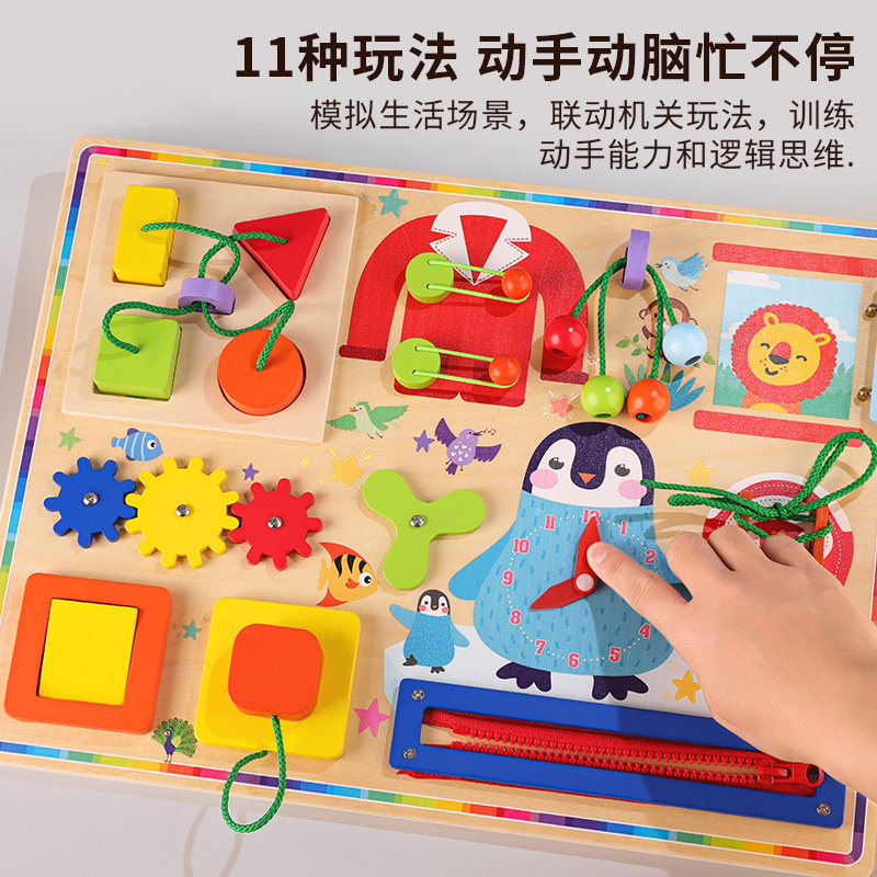 婴幼儿忙碌板蒙特梭利教具宝宝1-3岁2益智拼装玩具蒙氏早教专注力