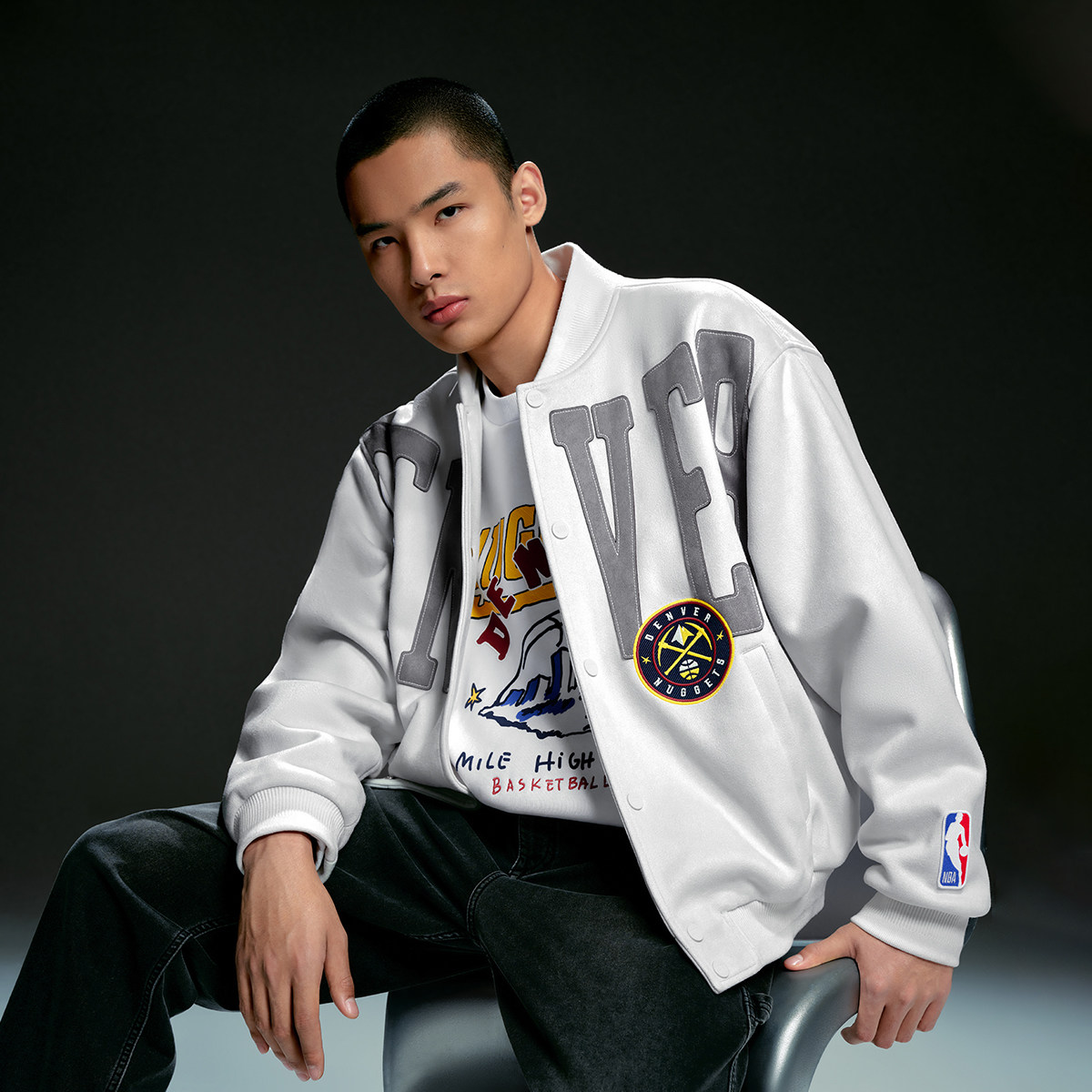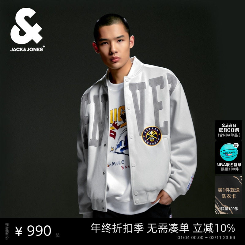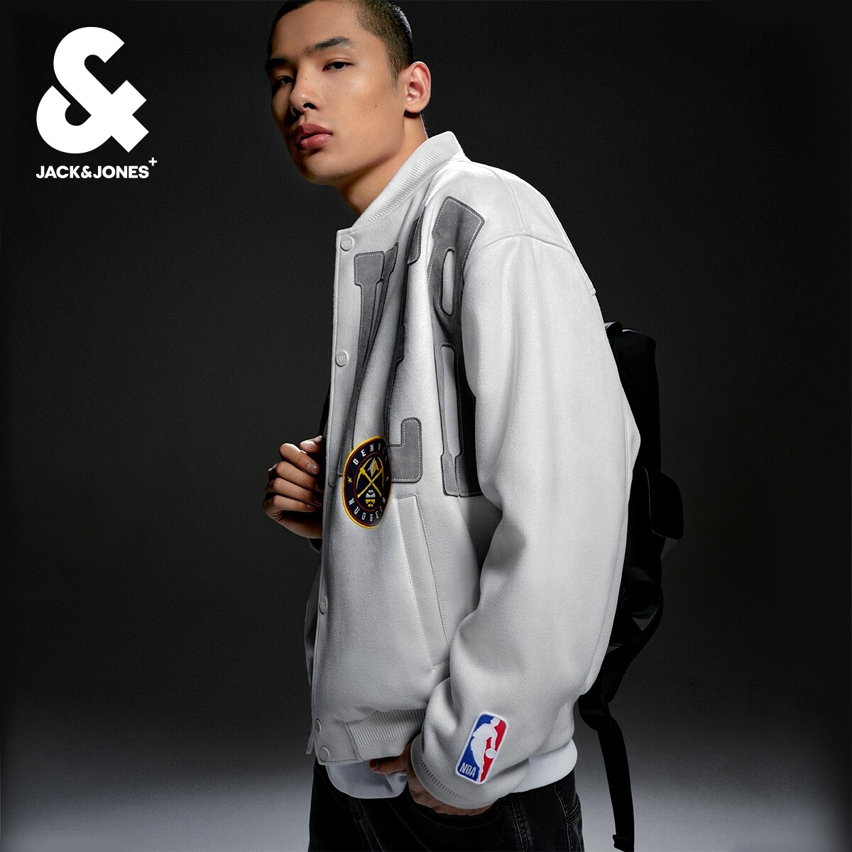杰克琼斯NBA联名掘金队男装夹克秋季新款刺绣棒球领宽松外套上衣