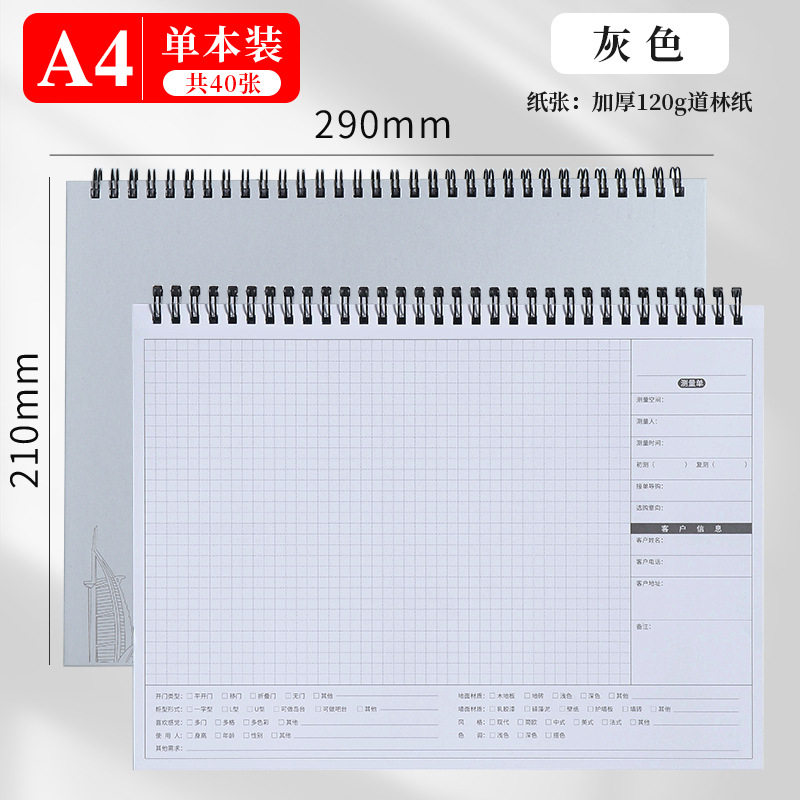 定制室内测量房A4设计师尺寸专用全屋装修绘图做记录线圈笔记本子