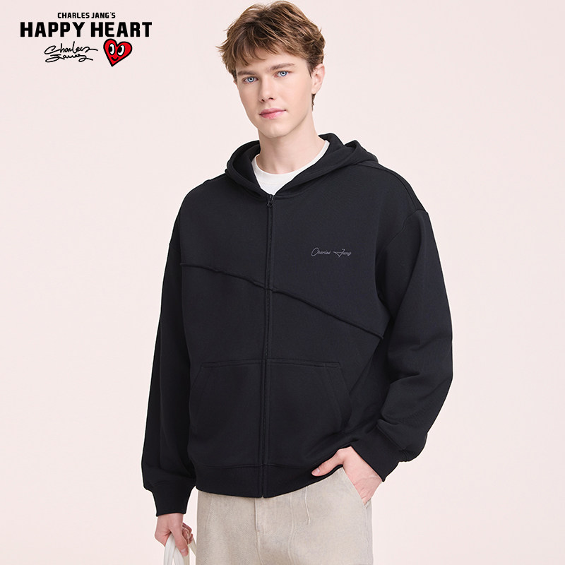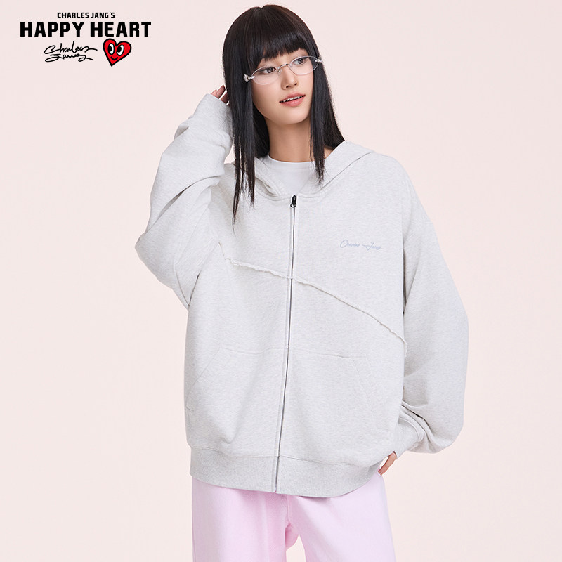 查尔斯桃心 手绘字母连帽开衫卫衣男女同款春秋季宽松休闲长袖