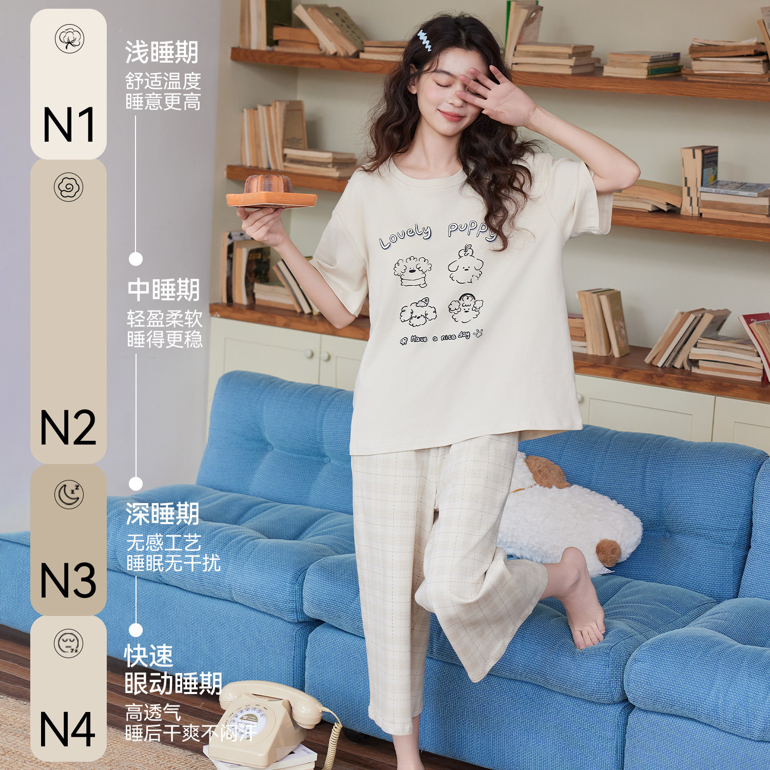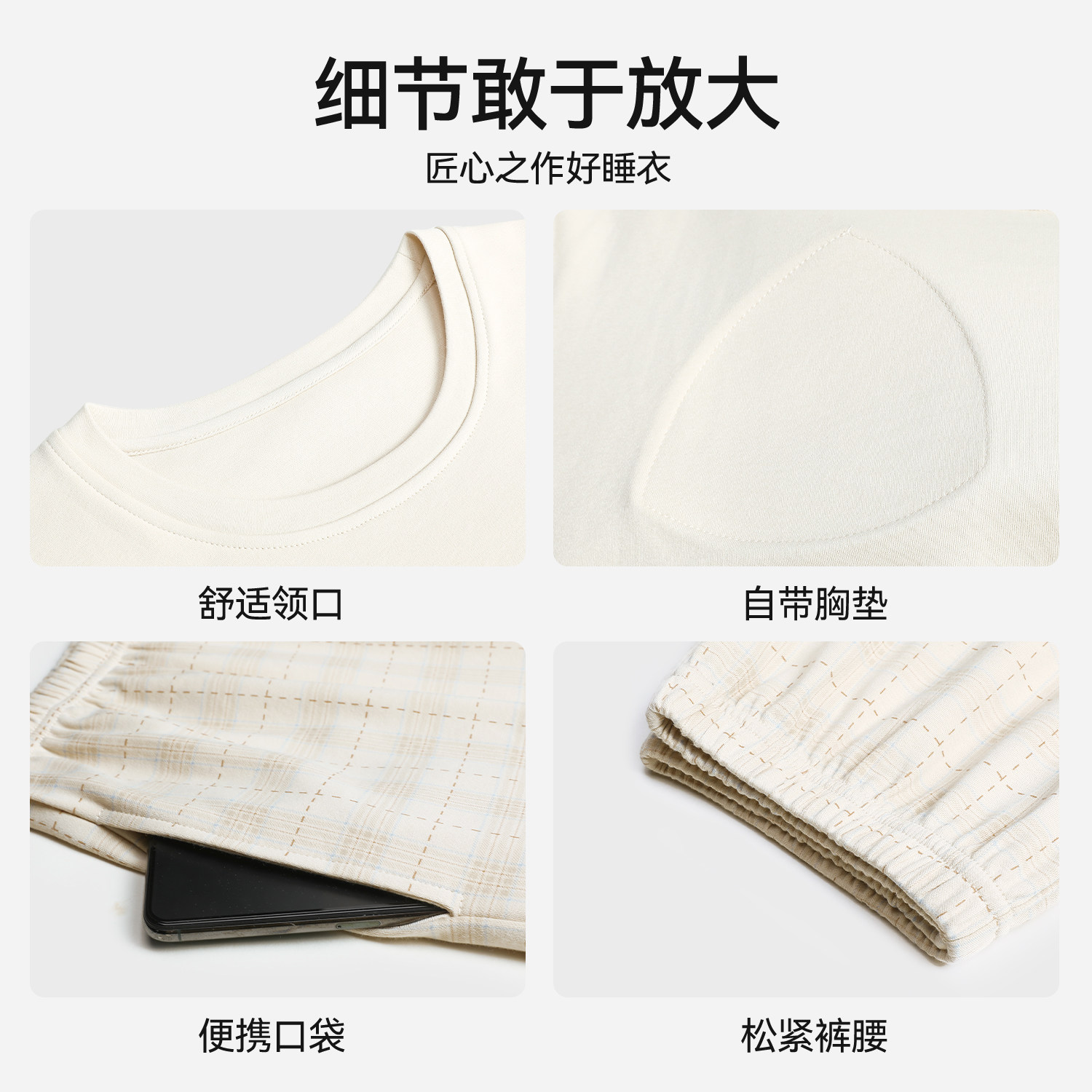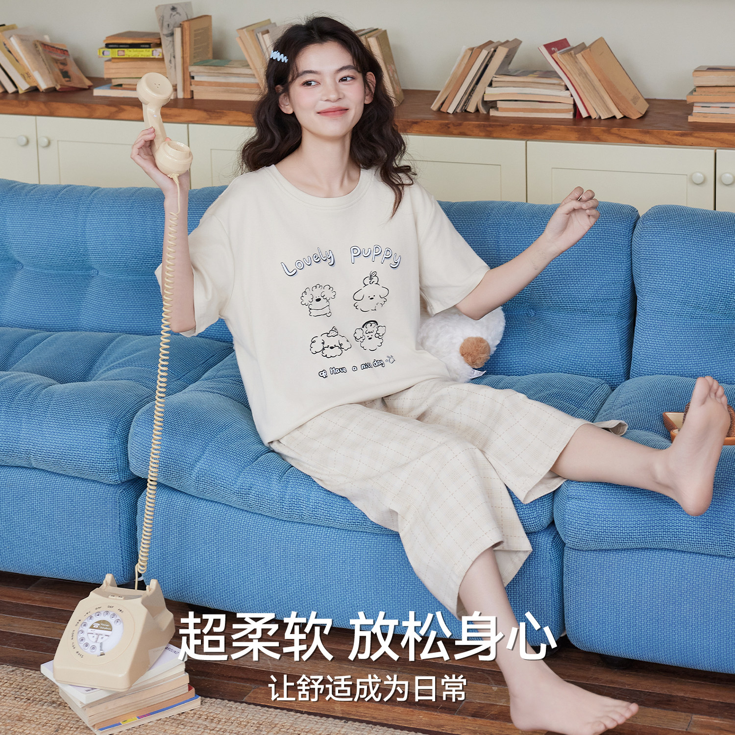 都市丽人纯棉睡衣女士夏季短袖七分裤宽松可外穿带胸垫家居服套装