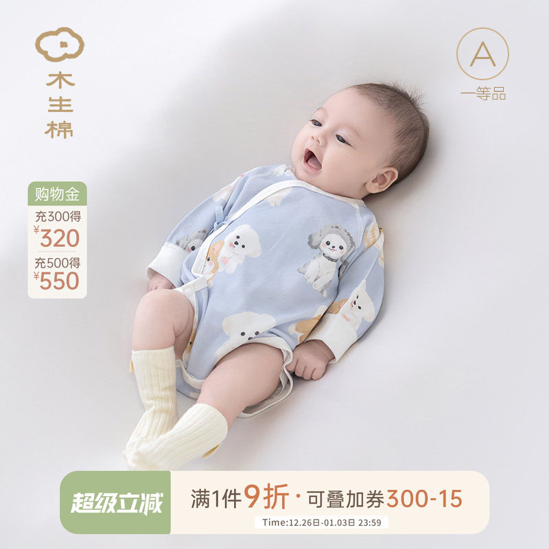 木生棉新生儿连体包屁衣纯棉宝宝春秋季三角哈衣和尚服婴幼儿衣服
